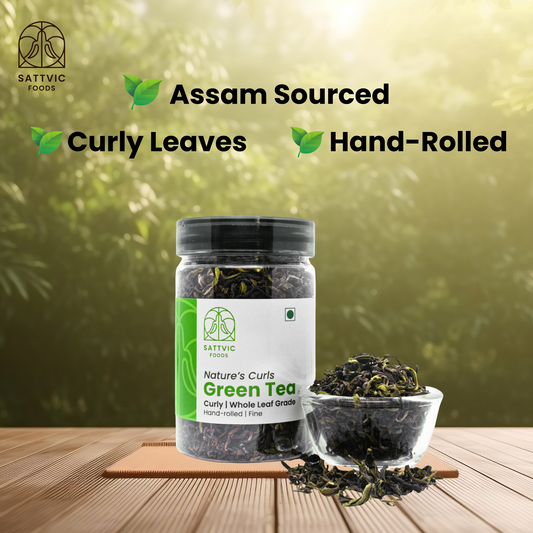 Green tea curls are hand-rolled whole leaves. They retain more antioxidants, offer a fresher aroma, and brew into a richer, smoother cup.