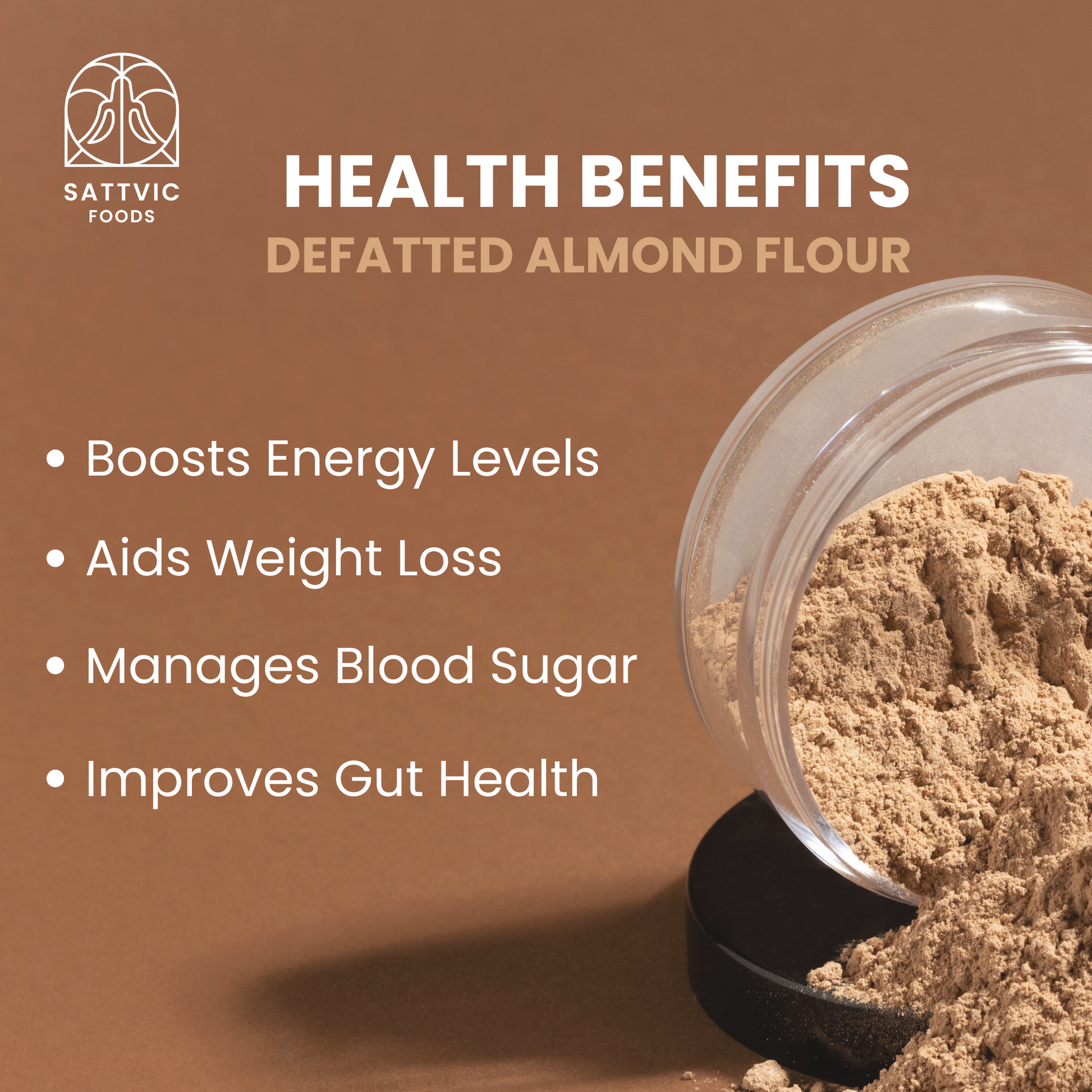 Sattvic Foods Defatted Almond Flour is a high-protein, low-fat, low-carb and gluten-free alternative to regular flours, specially crafted for health-conscious individuals.