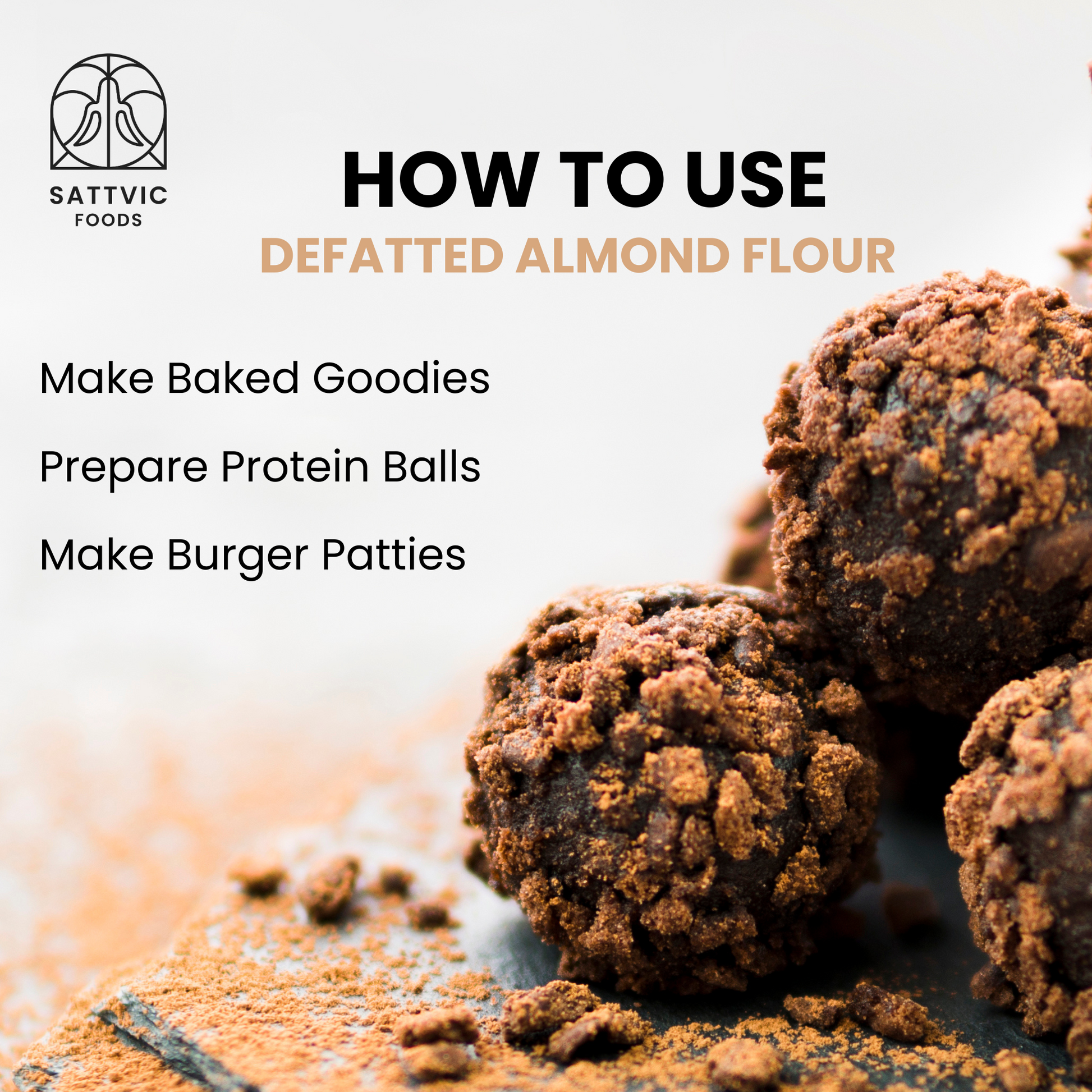 - Recipe Adjustments: When substituting regular almond flour with a defatted almond flour, add extra moisture (butter, coconut oil, dairy, or nut milk) and extra sweetness (jaggery, coconut sugar, FOS).